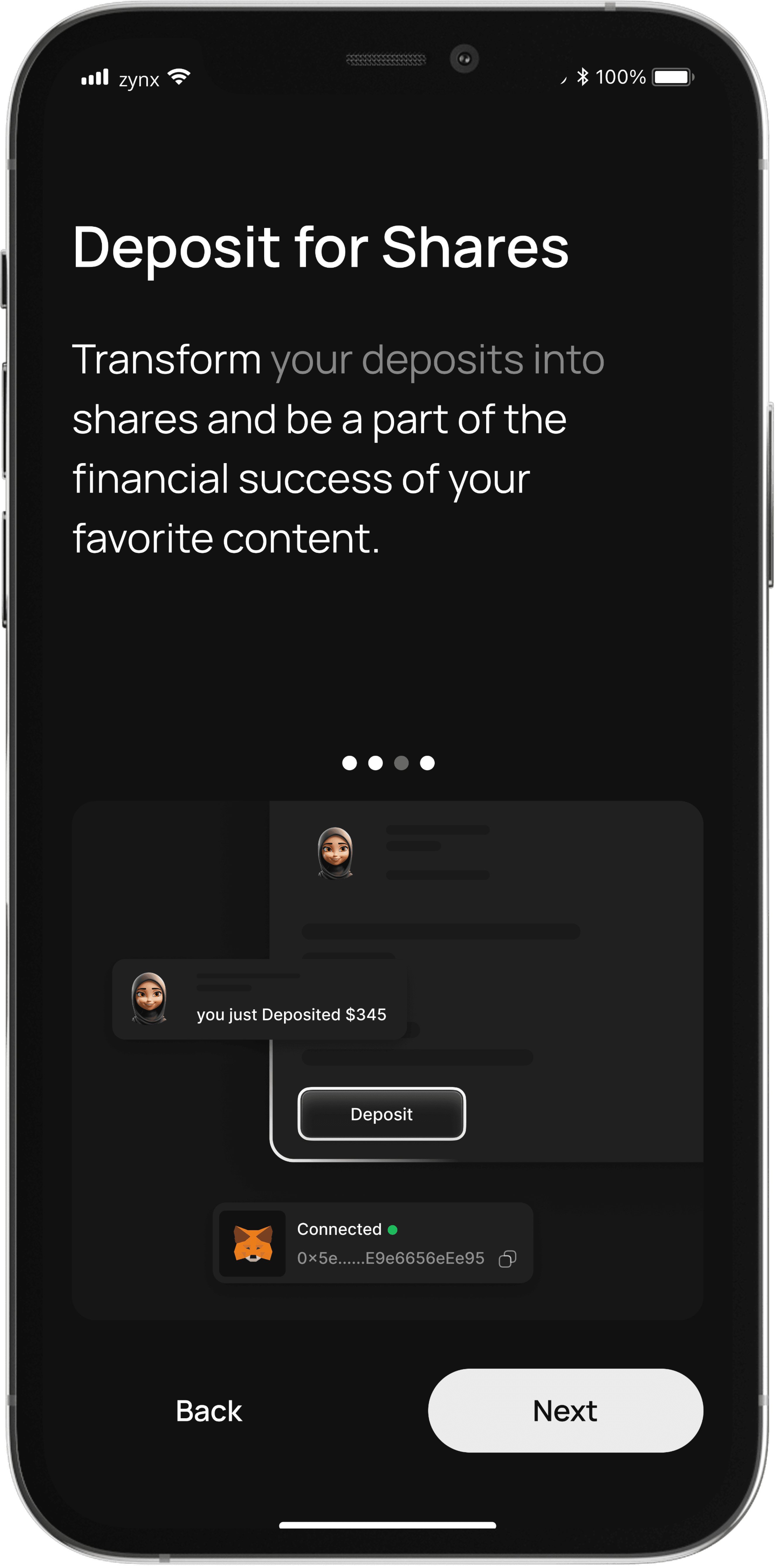 With Zynx, your investments align with your interests. Support content creators and projects you believe in, creating a symbiotic relationship between financial growth and shared passions.