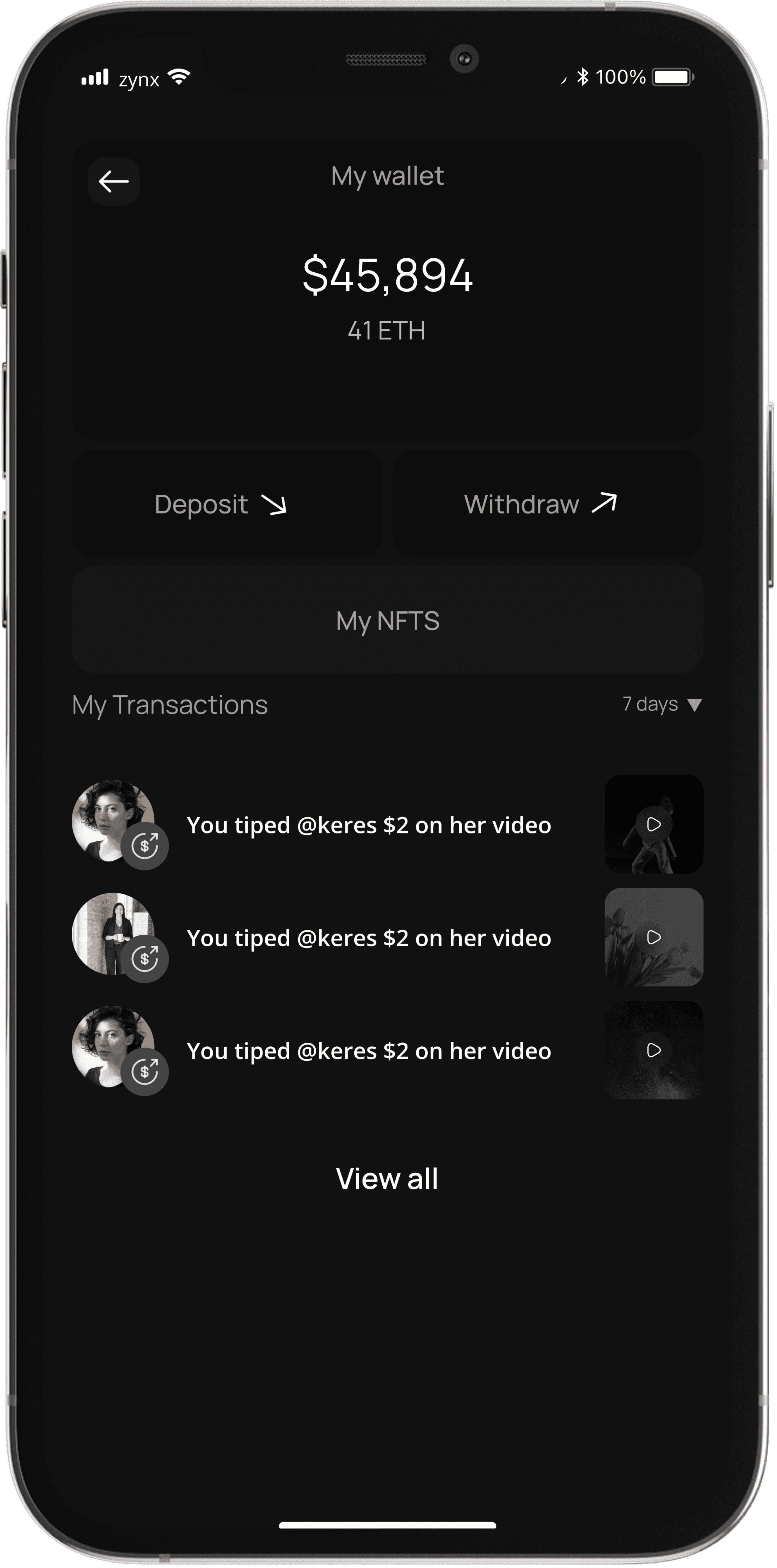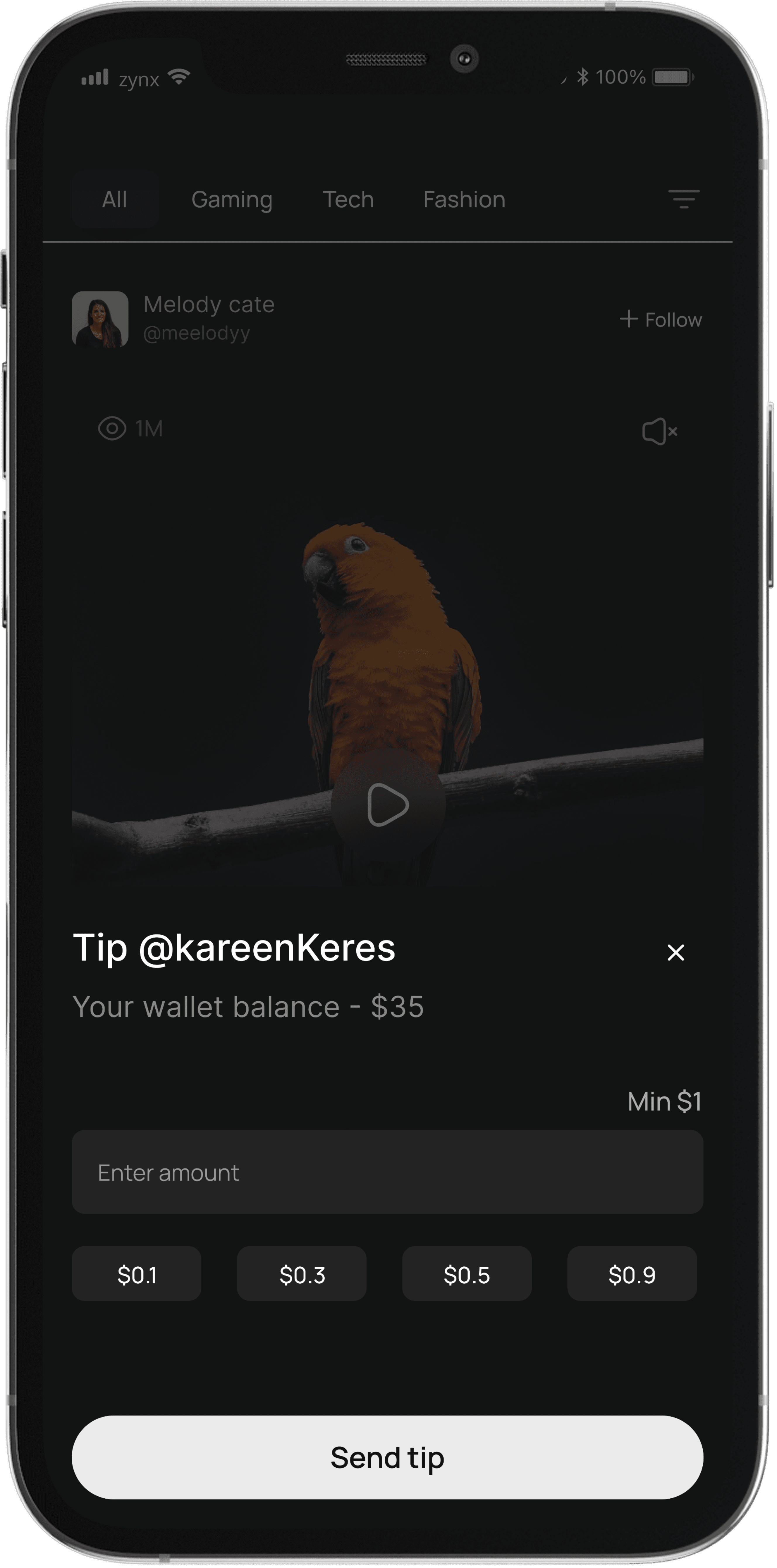 Show your support with cryptocurrency tips. A tangible way to appreciate content creators, tips elevate the digital experience on Zynx and reward creativity.